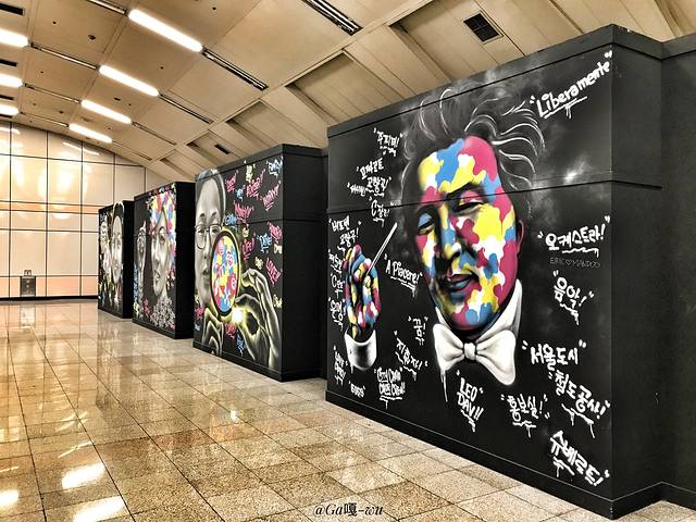 首尔 出地铁站的时候就发现了很多涂鸦!路上也是各种涂鸦喷画!厉害~