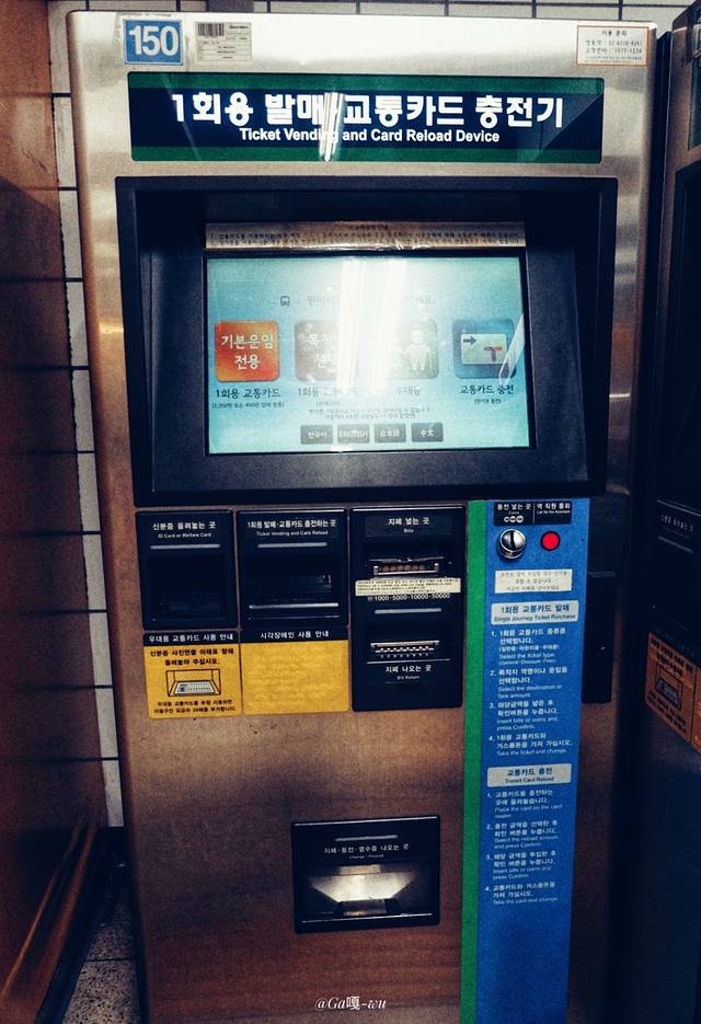 用不完可以在便利店或者退卡机(地铁、机场里都有)退钱,收₩500手续费 (机子长这样👇)