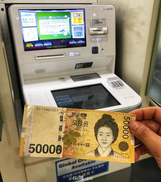 韩国 当地银行取款3次(免手续费):共取25W韩币,约¥1500,即¥750每人!吃喝足以!