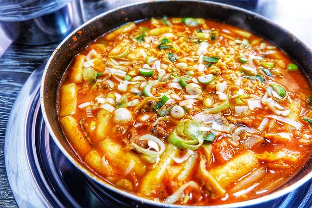 这估计是 韩国 部队火锅分量最少的地方了 不过我们两个女孩纸吃刚刚好,不会浪费!这里的蔬菜原来就是一些泡菜和洋葱...哎...