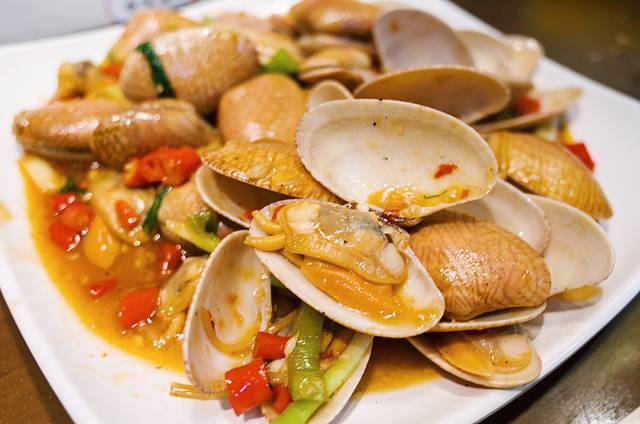 叮叮叮,第一道辣炒芒果螺上桌!我每次吃海鲜必点的一道,而且一定要吃辣炒的,辣炒的芒果螺不仅色泽好看,味道更是鲜美。对了,在挑选芒果螺时也是非常讲究的,不易选过大的,也不易太小的,适中的最合适,这样味道可以很好的融入到肉里,吃起来才香。