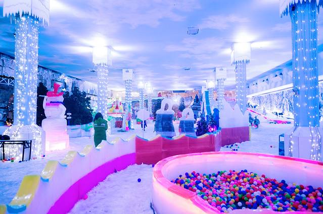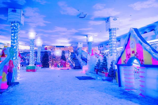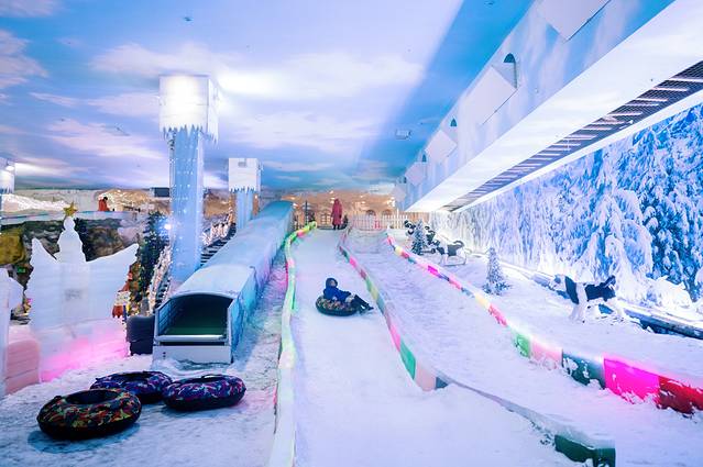 在里面有许多的娱乐设施,比如滑冰道、滑雪场、冰雕、戏雪区等等,从25度的环境走进零下8度的这里,那感觉简直嗨爆了,很多人毕竟都没有感受过零下的气温,甚至没有体验过冰天雪地中的娱乐,如果来千古情不妨到冰雪世界内体验一番,冰火两重天的感觉就是这么爽!