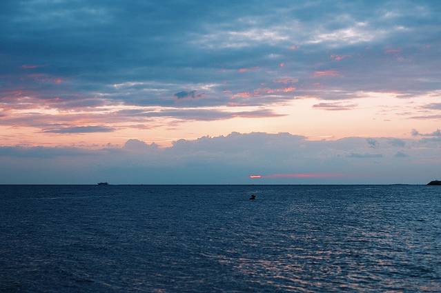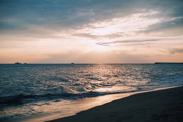 望向远处的海绵,在太阳的照射下波光粼粼的一道光芒,天空也变成黄色红色相映的颜色,情人湾的日落余晖果然名副其实,让我们观赏了一场壮美的日落。