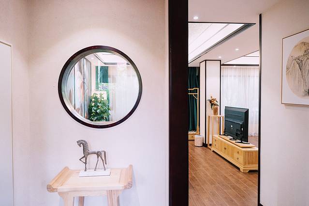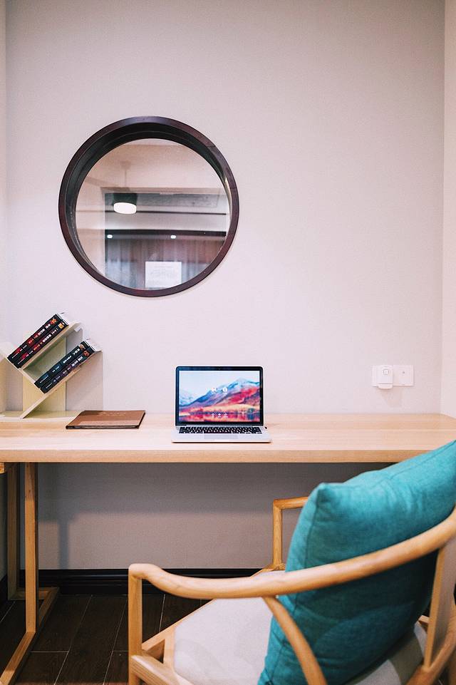 书桌前这片透明的圆形玻璃挺有创意的,应该是源自船只而进行的创意设计,不仅增加了门口那一块的采光亮度,更给人一种时光穿越的错觉,更一步拉近了我与这里的距离。