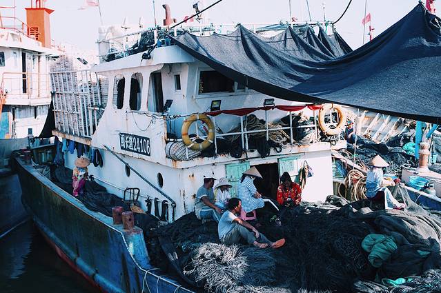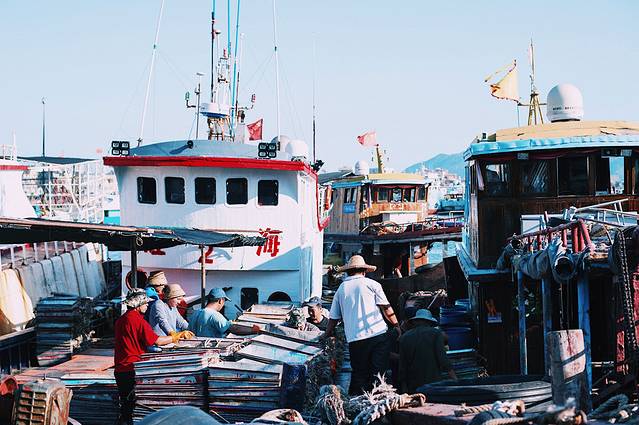 出海归来的船只正忙碌的整理者渔网等捕鱼工具,同时也期待着下次出海的大丰收。这里大部分都是大型船只外出作业,而不是简简单单的渔民出海捕鱼那种。