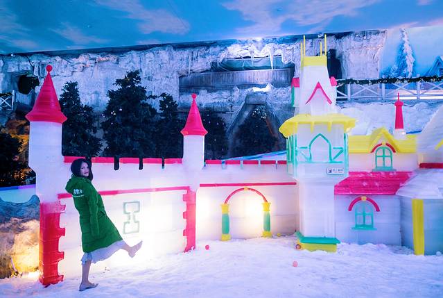 走进冰雪世界有一种走进哈尔滨的感觉,一座座精美的冰雕、冰屋、城堡、冰柱及雪松错落分布,犹如一座童话小镇一般,感觉小孩子来到这里会更加喜欢。
