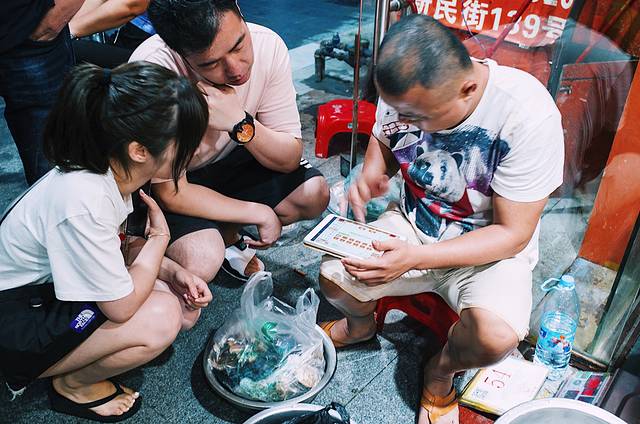 挑选海鲜也是有小技巧的,一定要用手去亲自感觉下是不是活着的海鲜,像一些贝类用手去触碰,肉会缩回去,另外称重时尽量多空下水,不要夹带有其他东西,同时一定要仔细盯着自己挑选的海鲜,以免被掉包。