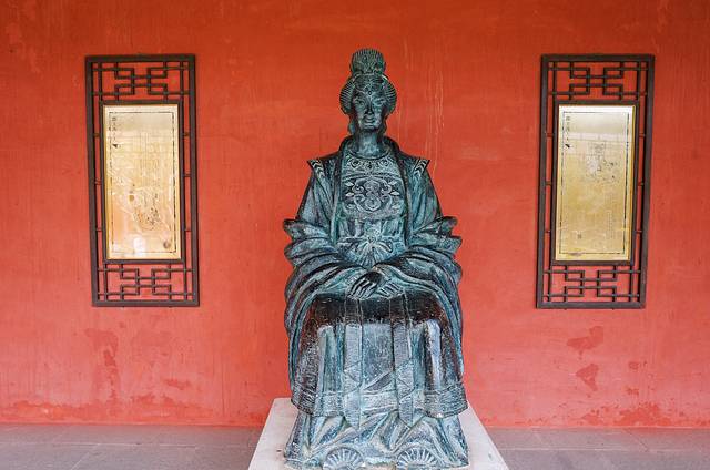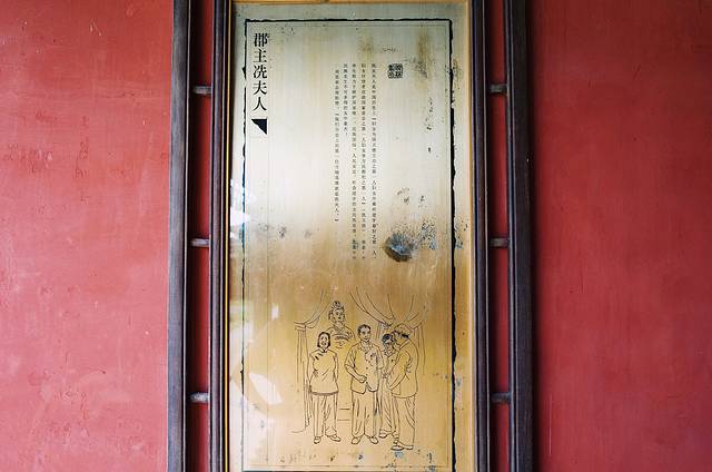 可看到“郡主冼夫人”的雕像,冼夫人是一个毕生致力于维护国家统一、民族团结、人民安定、社会进步的女民族英雄,是中华民族史上不可多得的女中豪杰,深受老百姓的爱戴,有着“岭南圣母”的尊称,是人们永远学习的楷模。