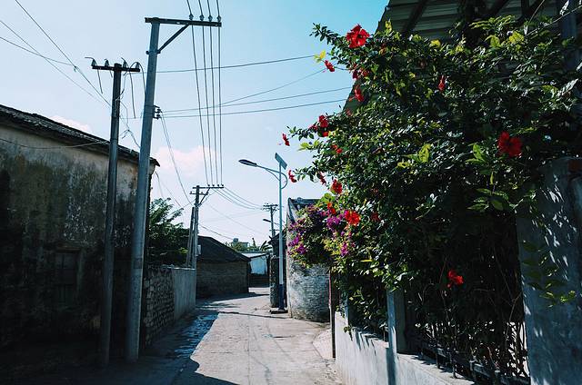 从街道一侧拐入一条通往老房子的小巷子,巷陌间依稀可见老房子的踪迹,两侧鲜花盛开,如果这里在稍微装饰一下,也许会成为一条网红小巷子吧。