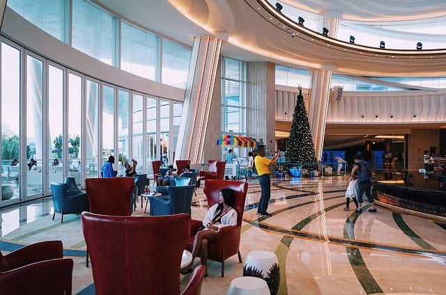之前几次来三亚就一直想住一晚亚特兰蒂斯,这次终于可以睡到了,内心不免还是非常激动的。来大堂办理住宿,给的房卡会有挂绳,到时可以直接去G层的活动预约中心兑换去往水族馆和水世界的手环。