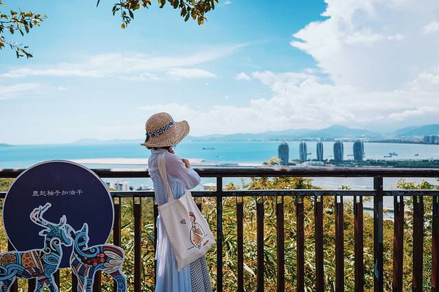 沿途还会看到许多的小牌子,上面除了画有鹿像,还会写上几句比较有意思的话,比如:敢问鹿在何方,鹿在鹿回头;鹿起袖子加油干等等。鹿回头的视野在三亚来说绝对是数一数二的,刚开始还是城市风光,转眼间大海现在眼前,凭栏而望,美极了。