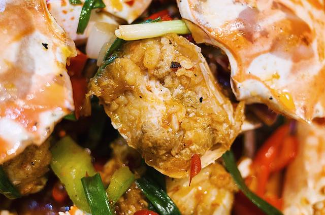香辣和乐蟹,没错,我承认我爱吃辣!和乐蟹,是海南四大名菜之一,前几次来都没能吃上,这次终于一饱口福。其实吃螃蟹一点不麻烦,先拿起蟹腿蟹身吮吸一口,再把蟹肉一点一点全部吃掉,最后再吃蟹壳,上面的蟹黄一定要最后品尝,吃完舌尖还残留有浓郁的蟹黄香味。