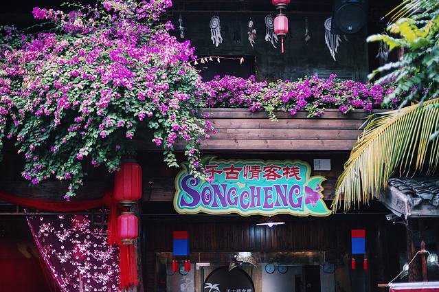 选择千古情客栈是为了游玩千古情更方便,也有充足的时间在里面逛,更可以观看到晚上的节目,不知义时间太赶,早早离场。千古情客栈位于千古情景区内,掩映于茂密的花丛之中。