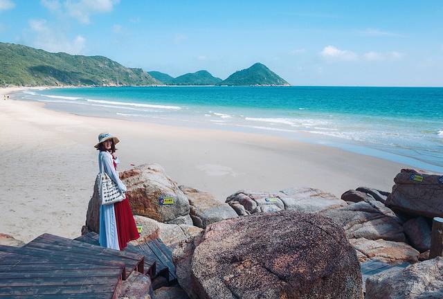 进入呆呆岛的话需要先乘车至南湾猴岛售票处,在这里可以单独购买前往呆呆岛的门票,乘船大约2分钟的样子就到了岛上,随后乘坐观光车大约15分钟便到了这片有着七彩沙滩之称的呆呆岛,可能是因为刚开放不久的原因,知道这里和来这里的人并不是太多。