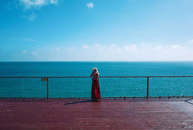 去情人崖的话需要徒步一小段的台阶就到达了山崖边的观景平台,在这里可以一览整个呆呆岛美丽的海岸沙滩风光。到的那天,天气非常的蓝,海水更是湛蓝湛蓝的,面朝大海,吹着海风的感觉真的太舒服了。