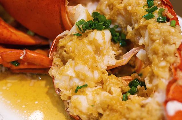 蒜香大龙虾,这货吃下去,感觉都快饱了一半了。除了辣,蒜蓉也是我爱吃的,清蒸后的大龙虾很好的融入了蒜蓉的香味,扯起一大块虾肉放进嘴里,满满的一大嘴,虾肉的香味混杂着蒜蓉的香味,令人回味良久。