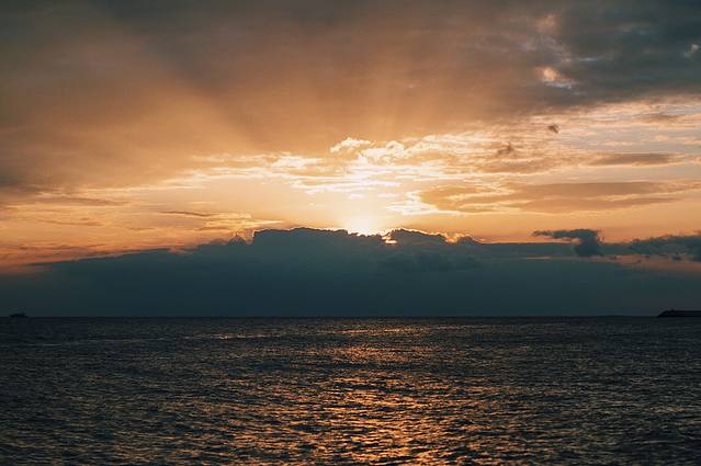 不过,话说的有点早,没多久,一大片乌云开始集聚太阳四周,将太阳全部覆盖了起来,留下了天空中万缕金光照射而出,最后太阳在仅有的“一字型”下结束了这场本会更加壮美的日落。