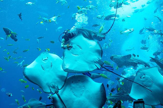 除了观赏各种种类的鱼类外,还可以观看喂鱼、美人鱼表演,当然如果你觉得还不够尽兴的话,还可以报名参加这里的潜水项目亲自去与这些美丽可爱的小动物进行互动。