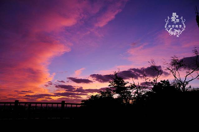 那天日落很美,滑梯看完之后在路上拍的,天空是粉色+紫色的。