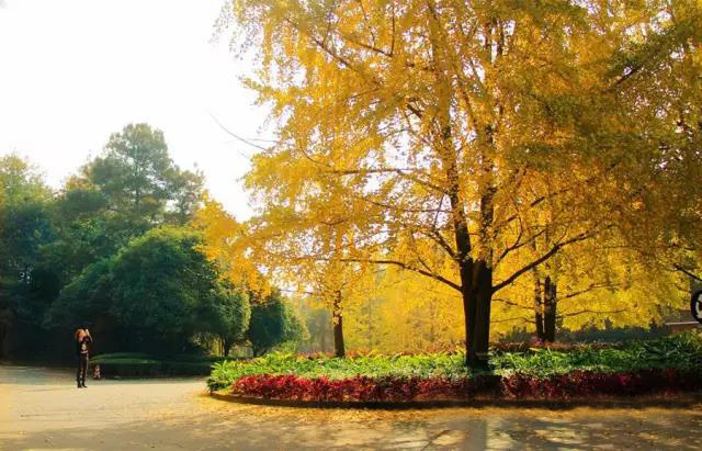 穿过2号门蜿蜒的林间小道,你会看到一片满树金黄的银杏,用它耀眼的色彩点缀了初冬的寂寥。