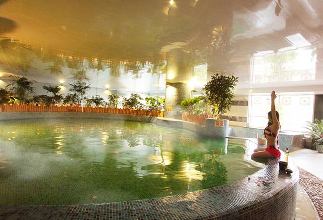 度假酒店有室内温泉池和东南亚风情格调的露天温泉池。露天温泉除白磺泉外,还有一池粉晶泉。微气泡穿越粉晶层产生负离子,达成另一形态的增氧,舒缓身心。
