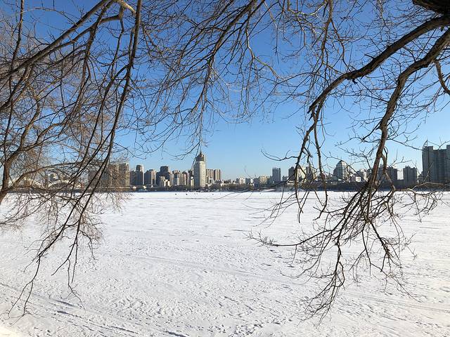 继续出发~徒步跨越松花江到太阳岛(很多人都是做缆车过去的,我呢,一是穷,二是想体验下冰面上行走的过程),手机暖宝宝刚到松花江上竟结冰了,哎……拍了几张照片,手机就处于被关机状态,没有经历零下二三十摄氏度,真的无法想象它有多冷,