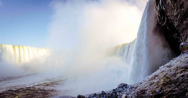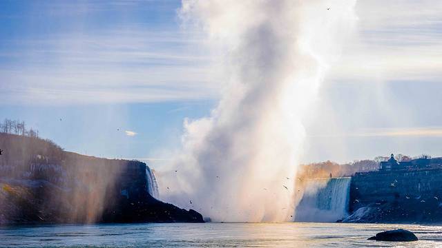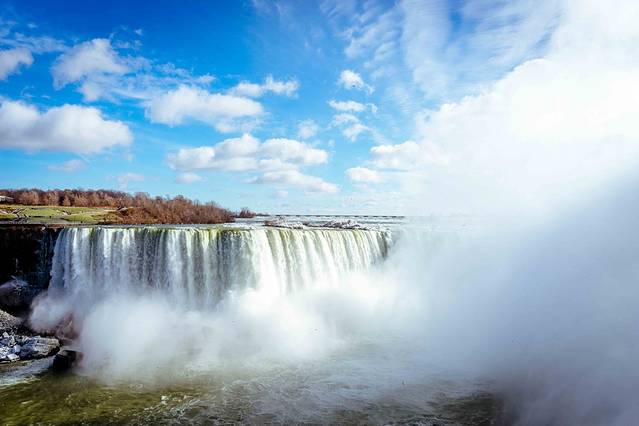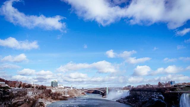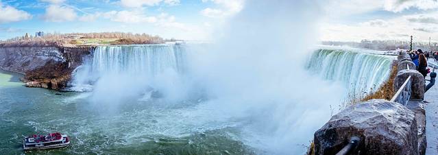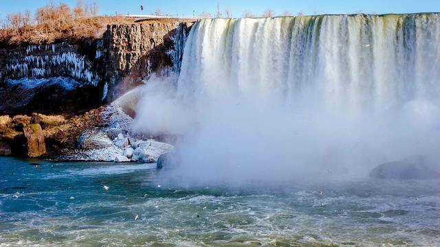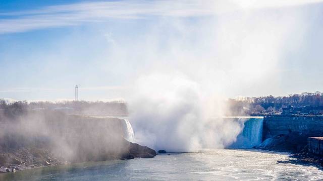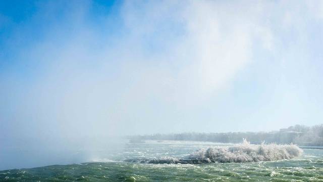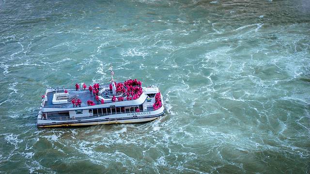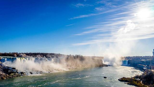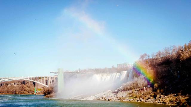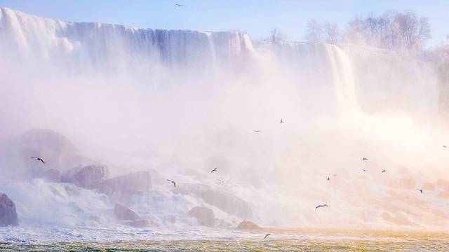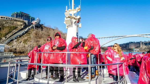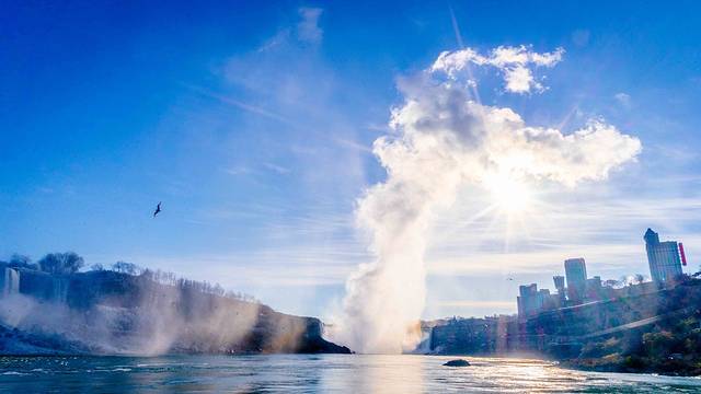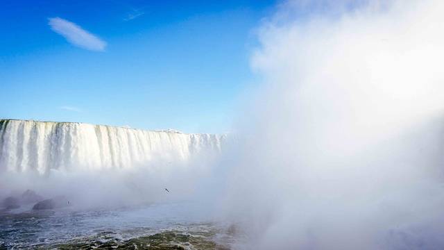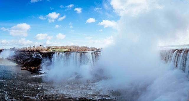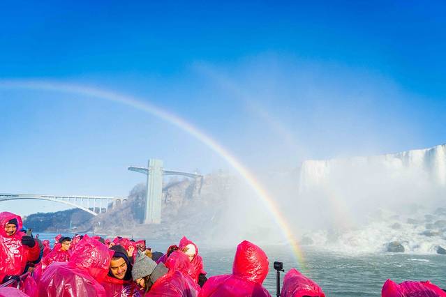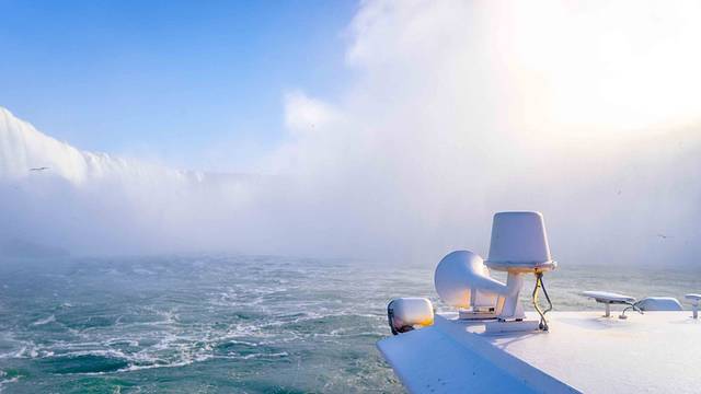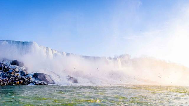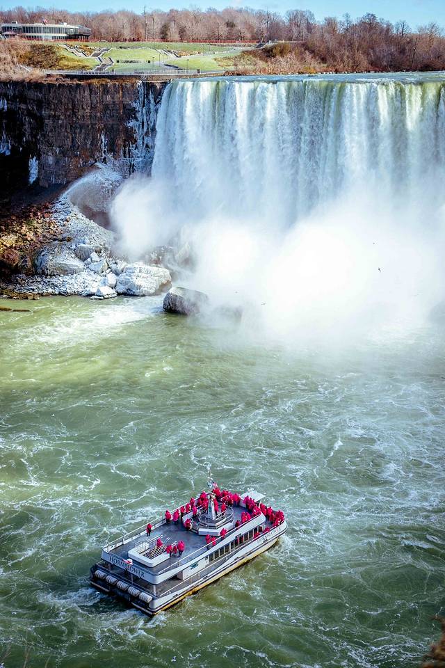 游船先经由美利坚瀑布、新娘面纱瀑布