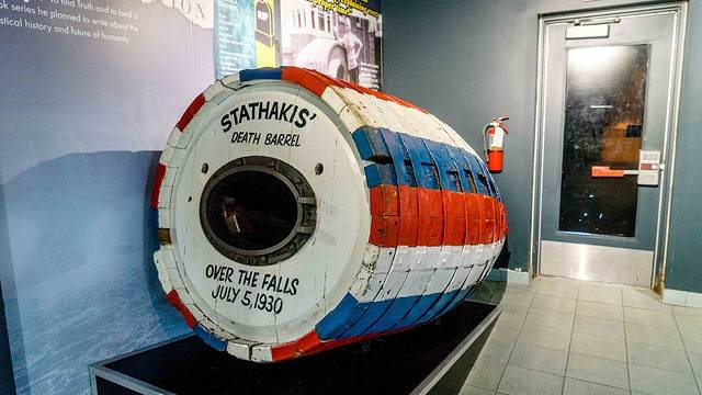 里面展出了众多挑战瀑布时勇者们所乘坐的工具