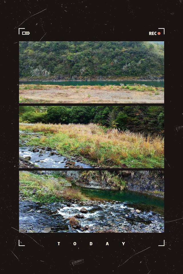 对岸的绝壁上,山色也还算可以用绿意来形容,但就是显得沧桑了些许。绝壁下的河道上裸露出一大片满是石头的河滩,河滩上长着许多荻花等河滩常见的植被,当然还有一条清澈见底的河流。这想起来这样的地方要是在城里,怕是要拿来烧烤野炊的。