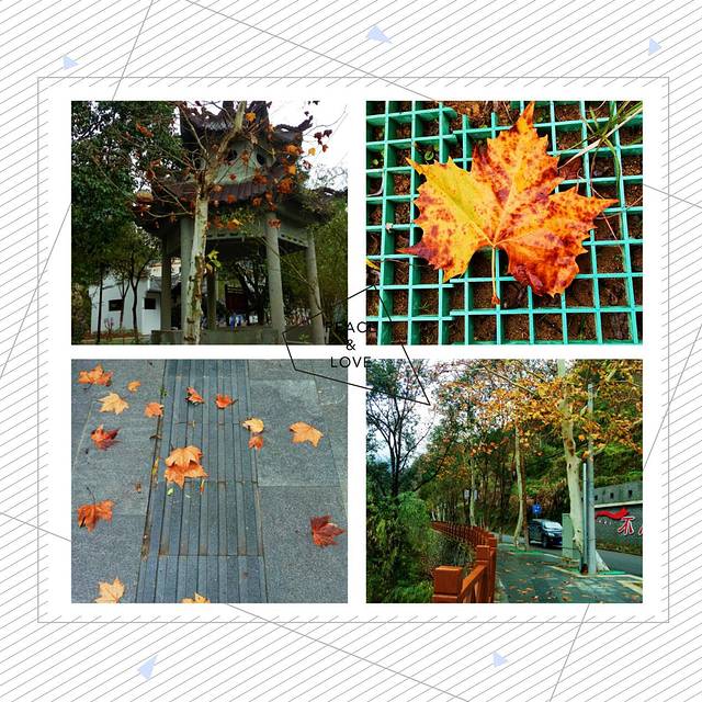 既然叫做梧桐,自然梧桐树是少不了的,已到了初冬季节,这里的梧桐树上还依稀挂着些泛黄的枯叶,随着寒风,啪啪作响。这些叶子似乎对秋天有些不舍,还拼命抓着枝头不放。有些已经拼尽了力气,这才落在地上,走到了它们人生的尽头的,经过一场冬雨,它们像是镶嵌在地上的图案一般,将地面装点的瞬间绚丽起来。