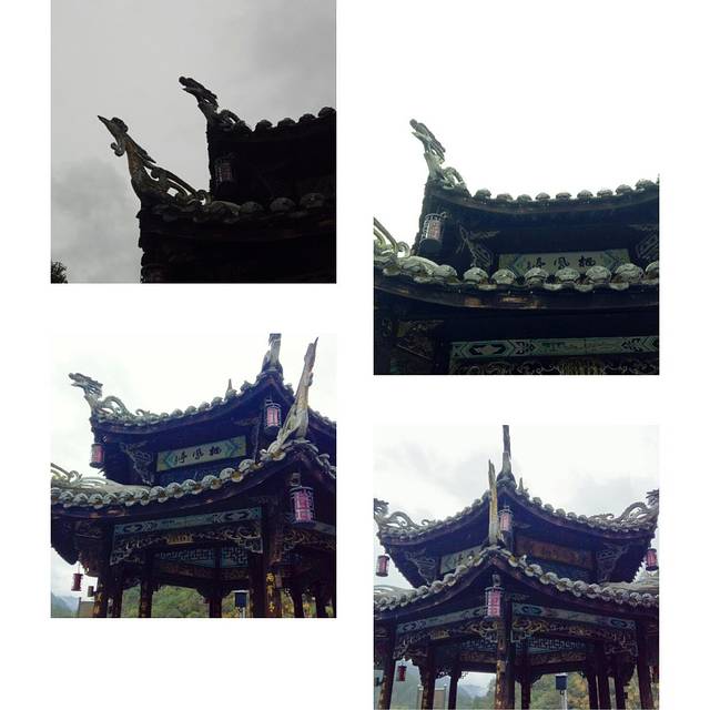 村里有一座叫做栖凤亭的亭子,色彩绚丽又不失典雅,雕工异常精美。屋檐分上下两层,顶上一层屋檐上翘起的是扭动着身体的飞龙,底下一层屋檐高高翘起的是优美的凤凰,飞龙和凤凰在屋檐上栩栩如生,感觉下一秒就要一起飞升的感觉。每个屋檐下还挂着圆柱状的红色灯笼,外面还罩着镂空雕刻的灯罩。亭子的屋檐下,屋梁上都是彩绘和各种寓意非常的雕刻,这是村里最美的亭子了。