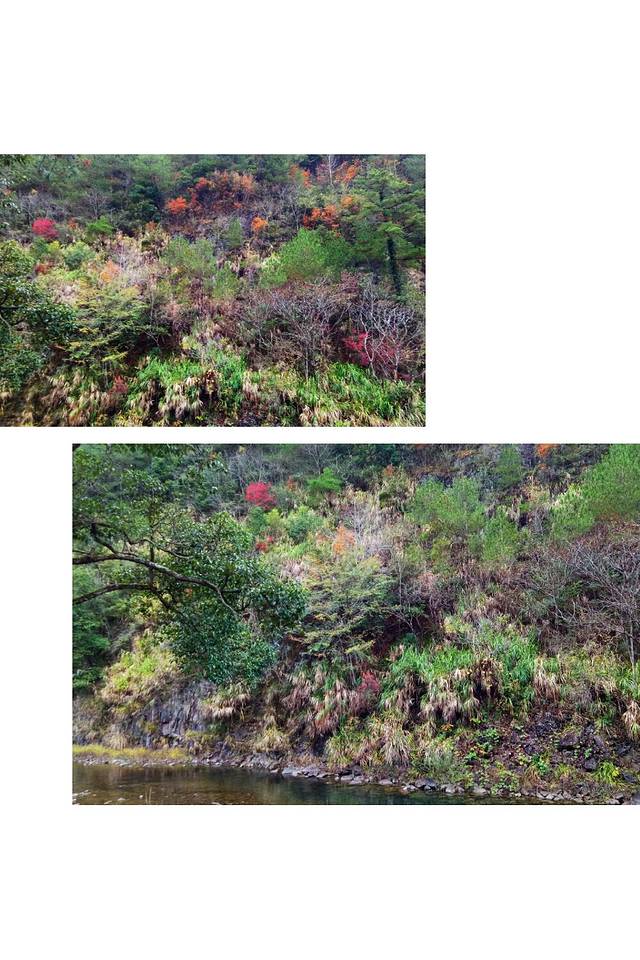 河流的对岸又是另一幅景色了,这个季节的山林总是夹杂着绚丽的色彩。有的殷红如同火一般,有的又像三月的花,有的又如金子一样明黄。这样绚丽的颜色仿佛是大自然煅烧的珐琅彩,极其美艳。