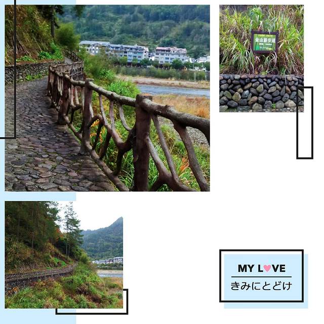 廊桥另一头,就可以进入长约一公里的金山游步道的,山路崎岖,路面铺满小石块,穿梭在山林间,耳边时不时传来声声鸟鸣,好不惬意。