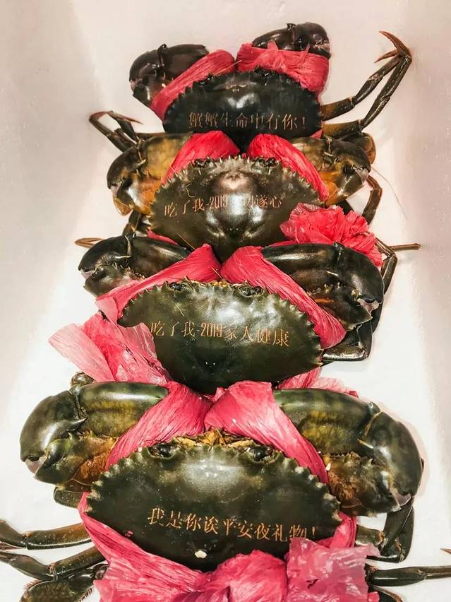 最重要的是现在吃蟹也成为了一件浪漫的事,可以通过激光刻上任何你想说的话,送家人、送朋友、送爱人都是新奇独特的,每一只蟹,每一句话都是独一无二的,但是想玩这种浪漫要提前预定哦~