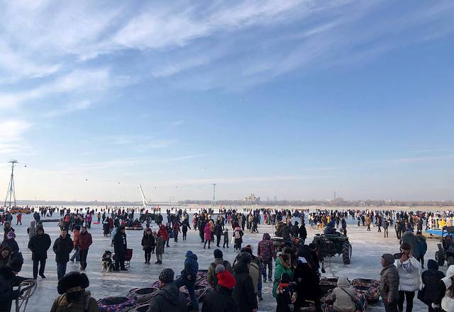 早晨我们睡到了自然醒,九点钟从酒店出发啦,先来到了松花江边,这么早就这么多人啦