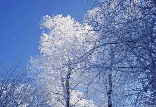 干枯的树枝仿佛长出的白色的叶子。