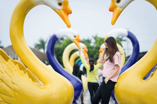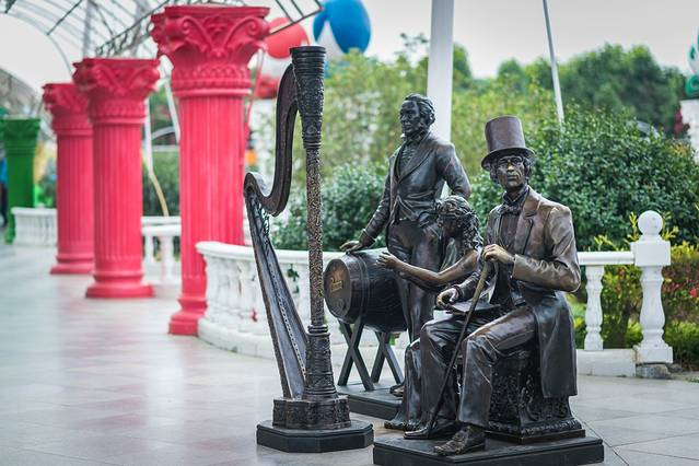 在罗马道、天鹅道是最多的卡通人物摆放着的。有女孩子梦寐以求的城堡和童话故事里面的公主人物,在这里可以让你的公主梦,王子梦,艺术家梦一一实现。