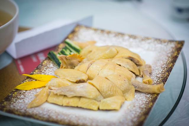 万葵园的我们除了是奔着花宴来的,也是奔着这“天下第一贵的鸡”葵花鸡而来的。这里的招牌菜葵花鸡都是由新鲜的葵花盘、叶、杆等炮制而成的饲料去喂养的,引用的是用葵花杆榨成的汁,是葵花杆喂大的走地鸡,引肉质鲜嫩甜美,自带着葵瓜子的芳香。葵花鸡有皮黄、骨脆、肉甜的特点,骨髓内有浓郁的葵花子香味。无论是白切还是盐焗,都是非常美味,不添加任何色素和酱油的。