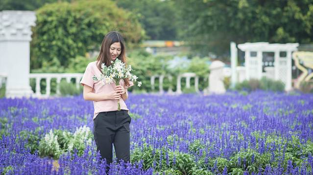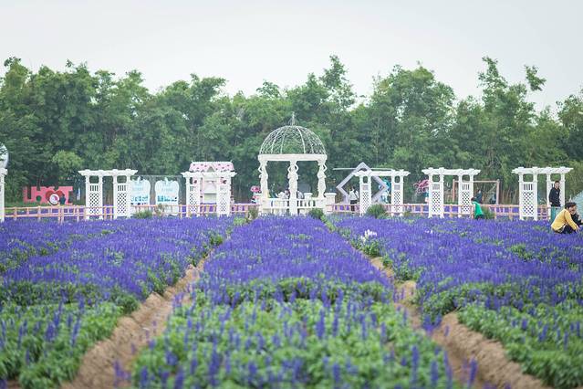 薰衣草是一种馥郁的紫蓝色的小花。在每一个景区里面薰衣草都是特别受大家的喜欢。这种薰衣草代表了爱与许诺一如它的花语一样,等待爱情。薰之恋伊甸园里有很多以白色为基调的拱门和城堡,走在这片花田里可以时空转移感受到异国的风情和浪漫。