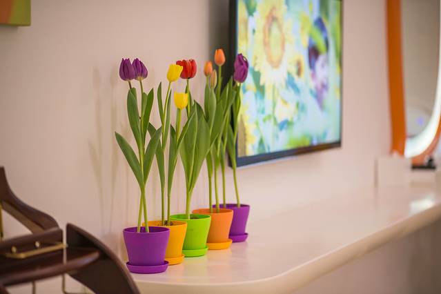 流线型的桌子上还会摆上适量的郁金花,再配上相搭配的花盆,看到它或许你又想拿起手机约上朋友一起和这些美的仿佛是假花的郁金香合影留恋了。