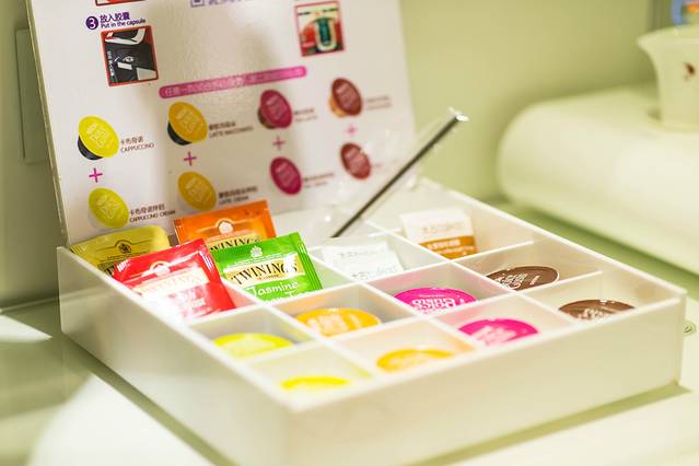 在小吧台还配有匠心独具的茶壶套装和知名TWININGS红茶,胶囊咖啡等,不过要注意胶囊咖啡四款中有一款免费试饮,第二款十元。咖啡机也是非常智能的,喜欢的口味就可以直接加入咖啡机,玩了一天疲惫的你,回到房间能喝一口咖啡后再次欣赏不一样的郁金香简直是无可挑剔了啦。