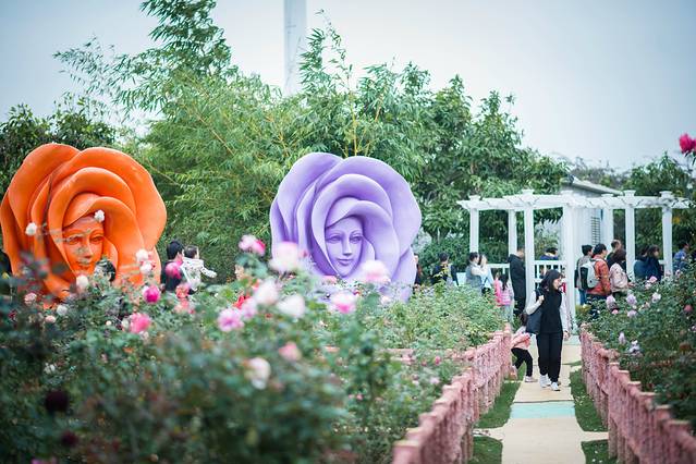 在玫瑰园里有成千上万朵玫瑰花,20多个品种,各种颜色的玫瑰。玫瑰花的花海、承载了我对你的所有爱,带上想喜欢的人来到这里告诉她你对她的爱意。
