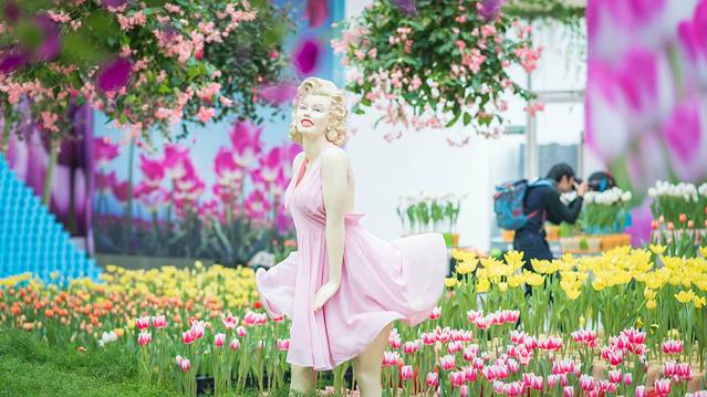 喜欢拍照发朋友圈的我,来到这里除了和花拍照绝对是不够的,展馆里面围绕着郁金香打造出的30多个场景,让我可以用上我毕生的摆拍姿势在这璀璨的花园中留下属于自己的倩影。