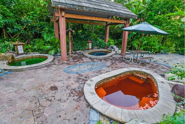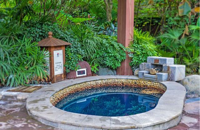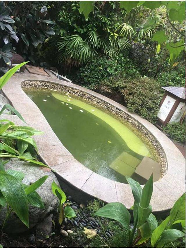 到了室外,又是一番先天地!大大小小的温泉泡池错落有致,规划格局十分用心,和四周景色融为一体。水色澄澈透明,心情瞬间舒畅起来。
