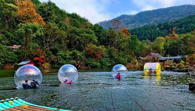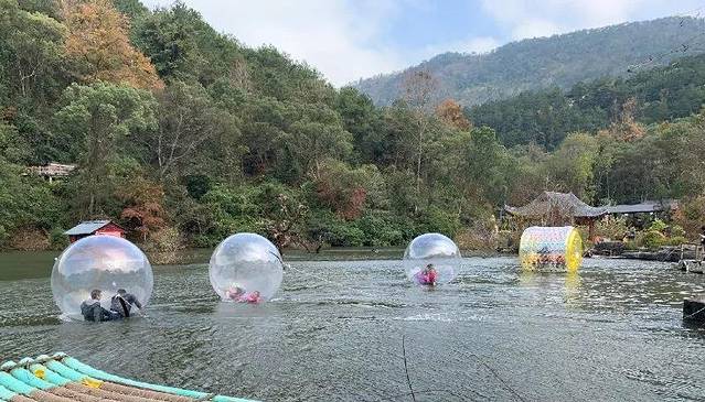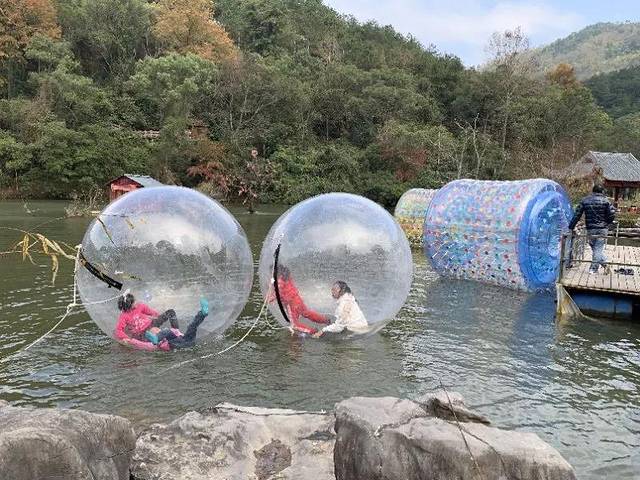 小朋友尽情的在水里翻滚,在球里嬉笑,