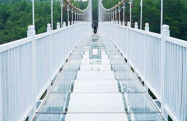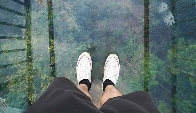 当你踩踏在玻璃桥俯瞰山下美景时,
