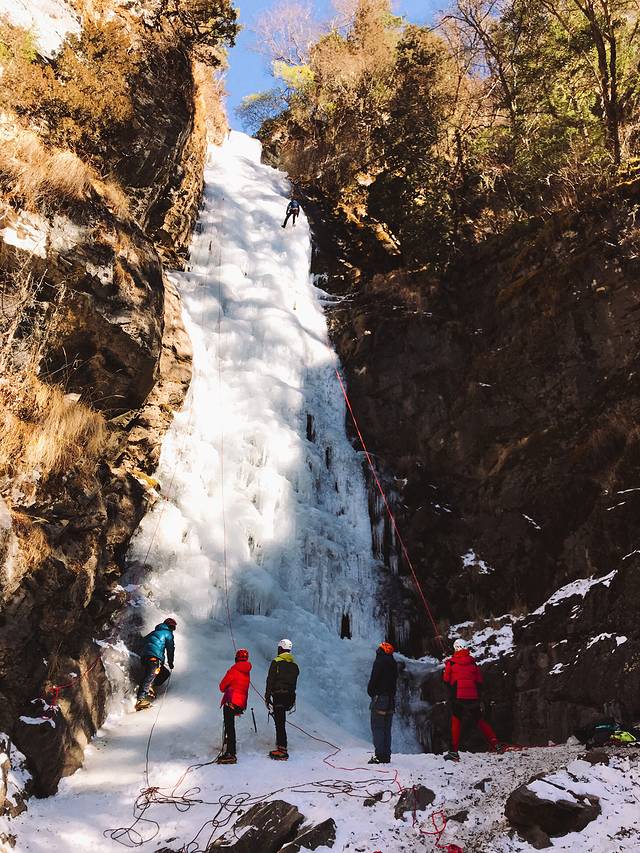 攀冰爱好者们正在攀冰