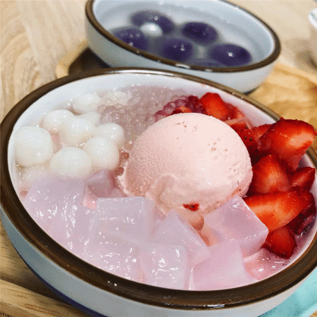 草莓恋人和水果星球配芒汁凉粉,是我们最后选择的,一个用来消暑,一个用来尝尝新鲜的水果,顺便打卡拍照。毕竟和欢欢好闺蜜,一起吃一碗里的东西好几年了,所以一起消暑一起打卡咯哈哈哈。