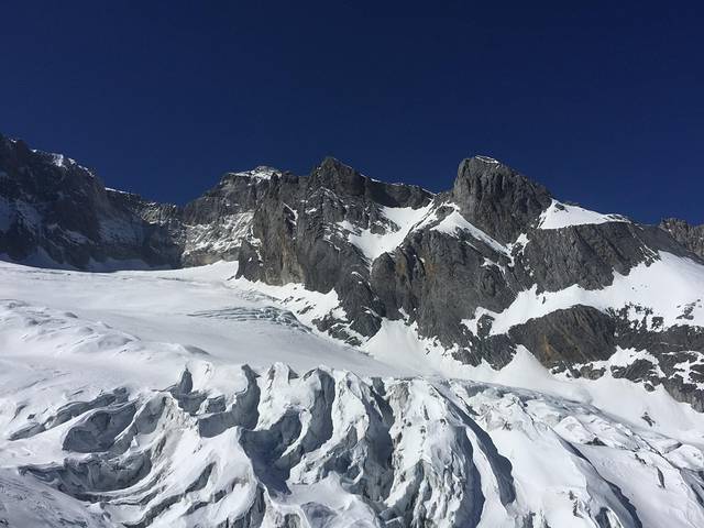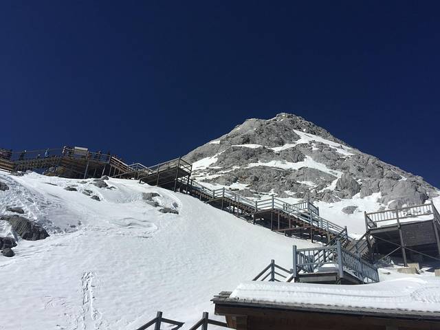 雪山本来就是去云南的第一目的,早上去了蓝月谷,中午吃完饭直接去坐园区大巴车然后排索道,这里要说明下,冬天雪山上风非常大,如果遇到风大的情况,索道会停运也就登不了雪山,在我们之前的三天好像都因为风大而停运了,我们运气非常好,当天顺利坐上了索道。