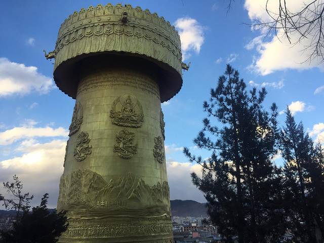 塞车到下午四点多才吃上午餐(藏香猪),很有当地特色很好吃。然后直接入住的酒店,酒店就在独克宗古城边,休息的时候自己几个逛了古城,去了大佛寺,转了转经筒,尽管没有带现金添不了香油,喇嘛还是给了我们香祈福了。